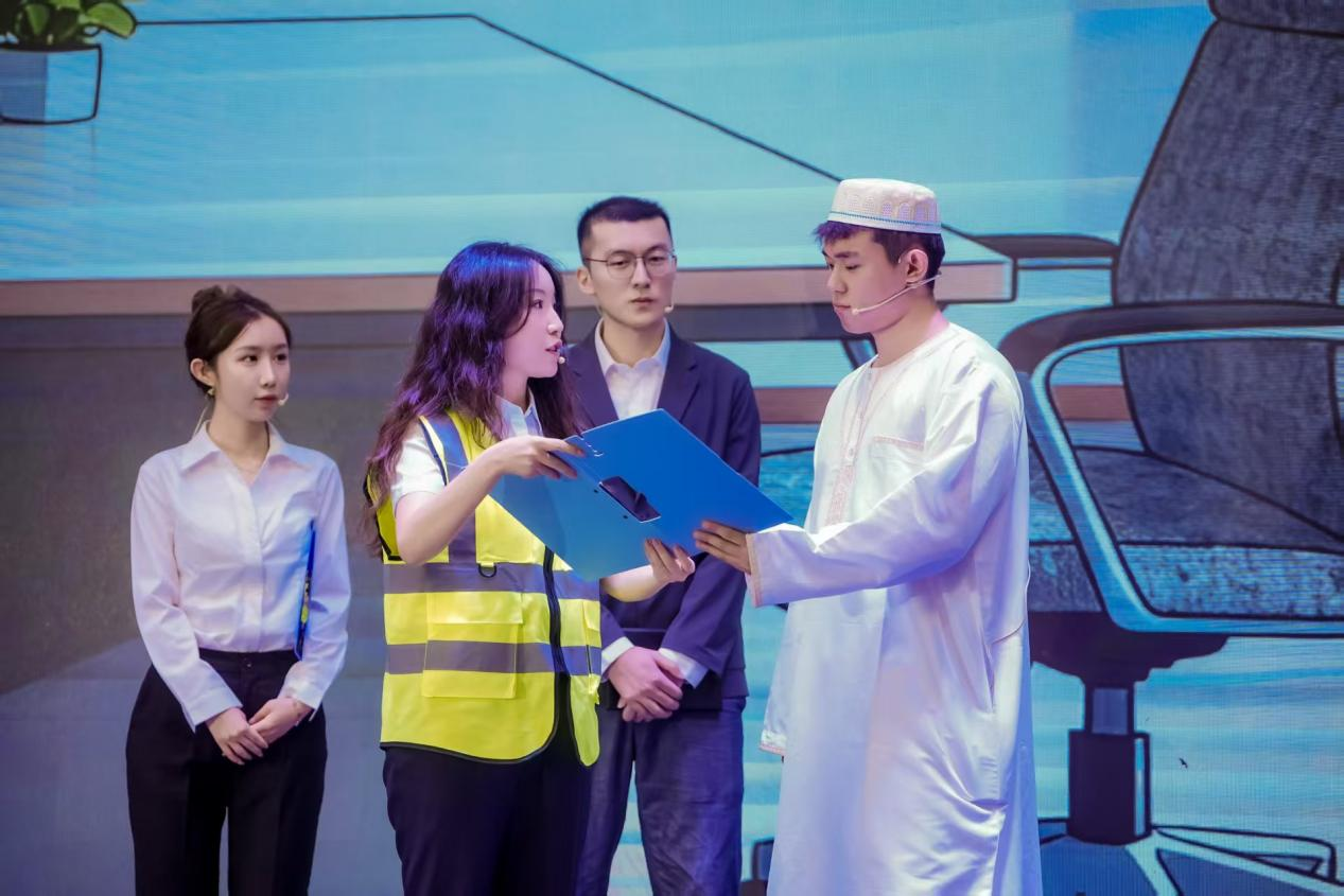 西北公司參賽選手精心選題、團結協作,編排了情景劇《Rail of Friendship-友誼之軌》,情景劇以集團公司出口供應雅萬高鐵鋼軌為背景,講述了海外工程項目中“物資人”克服技術困難、文化差異,最終完成雅萬高鐵鋼軌物資供應并與當地人民建立深厚友誼的感人故事。西北公司團隊通過前期認真準備、刻苦排練,在決賽中呈現了一場形式新穎、配合默契、幽默詼諧的精彩演出,獲得了現場評委和觀眾的一致好評,榮獲“團體賽三等獎”。